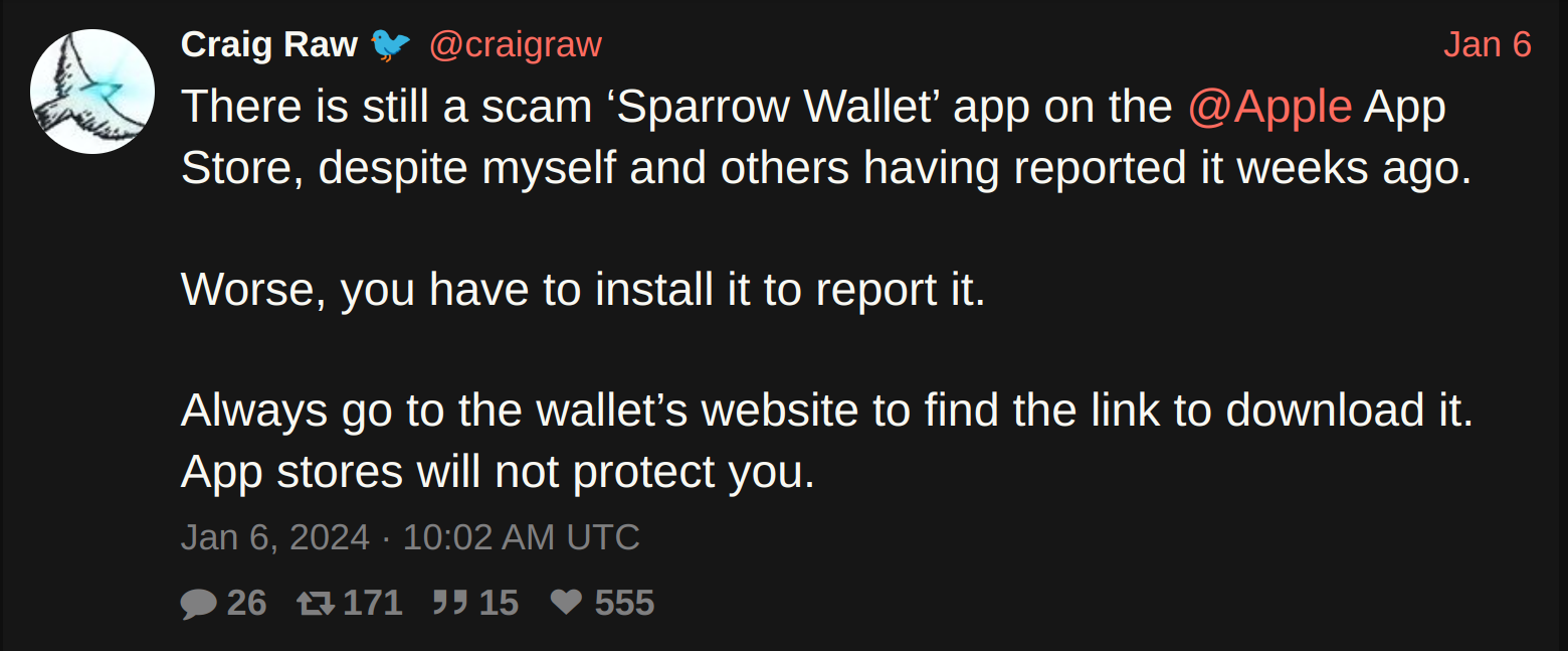 Craig Raw is a developer that I trust, but after configuring Sparrow to work completely offline (node in my LAN, disabled mempool fee estimation, etc) I was surprised to find an HTTP request to sparrowwallet.com with OpenSnitch - which I immediately denied. Is Craig rugging my hot wallet? I went straight to the source code. Turns out it was a simple version upgrade check. So yes, these tools aid us immensely in our strive to verify not trust.