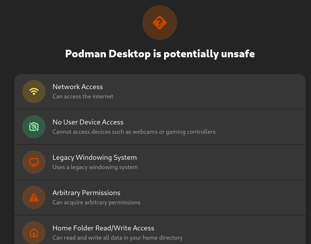 Something similar happens with Flathub, which in addition hosts binaries packaged by third parties, yet another layer of trust, as these community-run projects lack resources. (Guess what fixes this?)